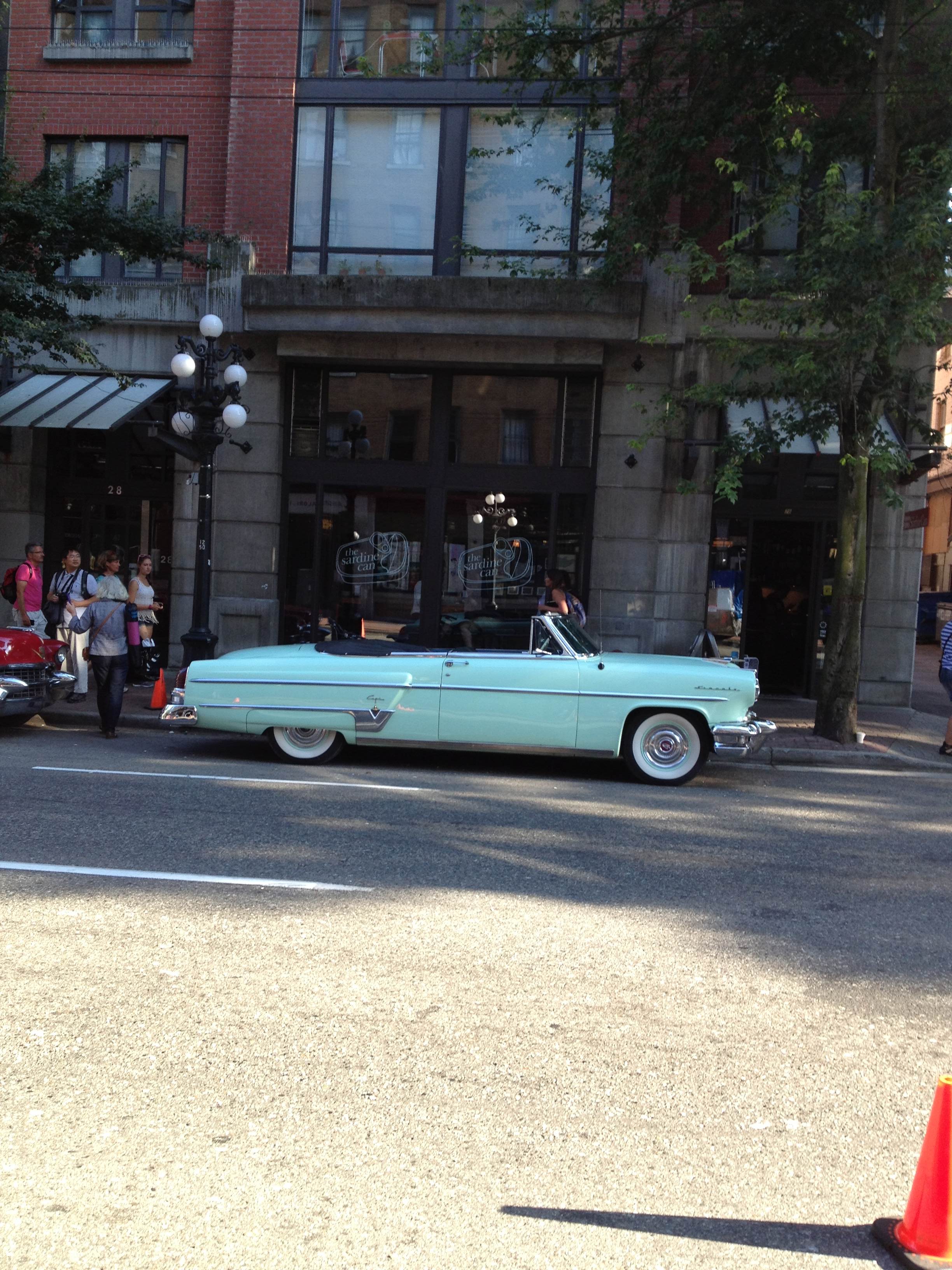 Here are a few of the photos from the Big Eyes set today in Vancouver, including some ’50s convertibles and a Rexall Drugs store window on Alexander Street, in what is normally the Stussy Vancouver shop:
