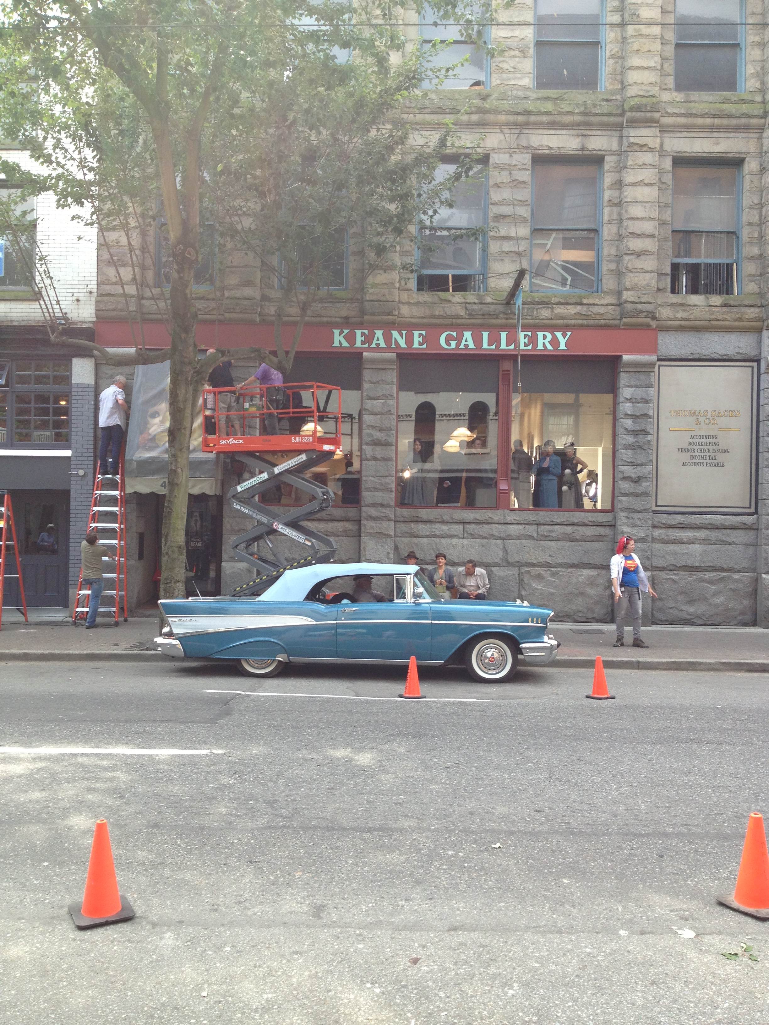 Filming of Big Eyes, which has a $10-million budget, starts near the end of July in Gastown (July 29 Update: Burton now is filming on Powell Street in Gastown, just east of the Europe Hotel). Burton is apparently a fan of Keane’s work and once had the artist paint a portrait of his girlfriend, now former girlfriend.