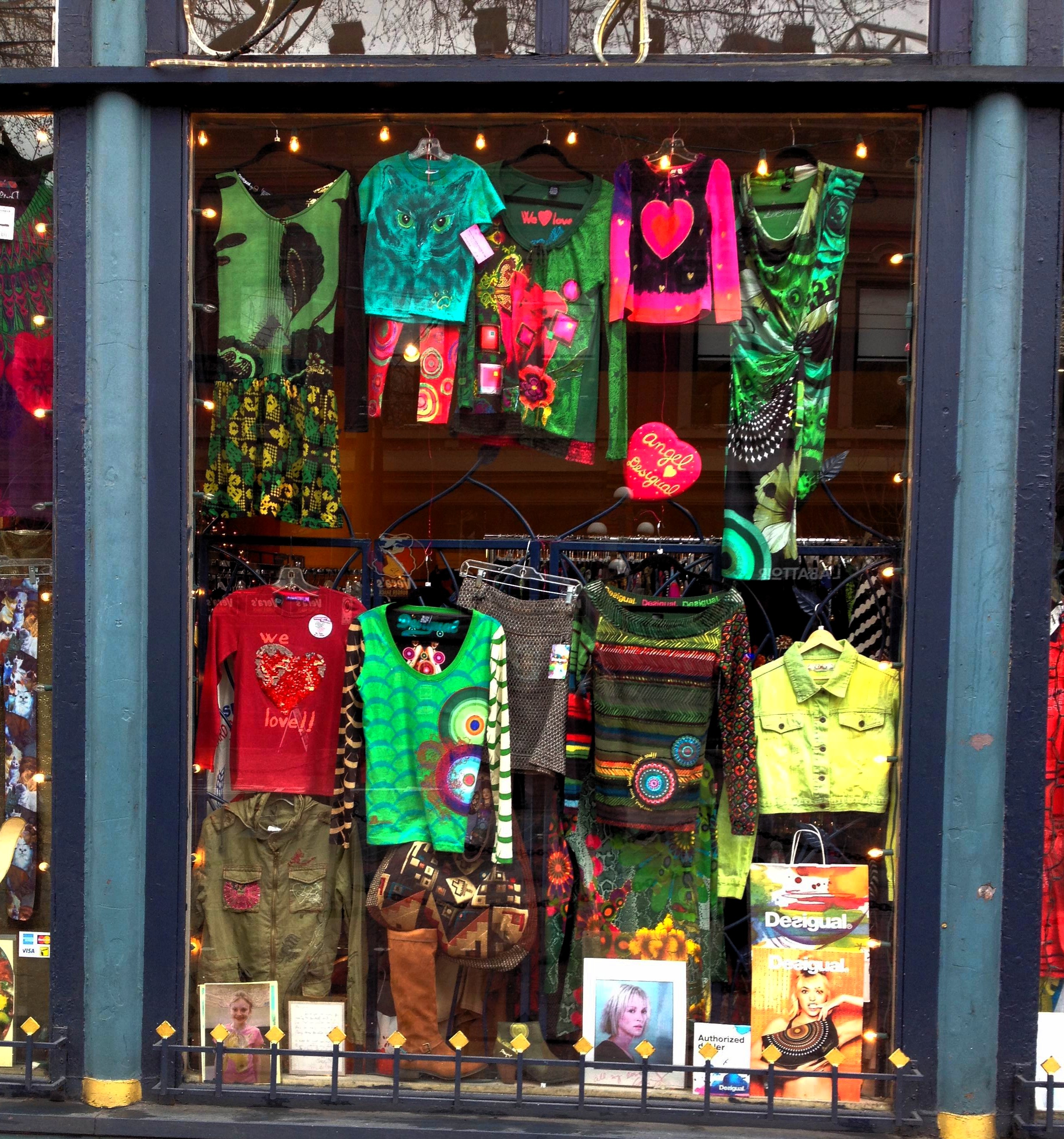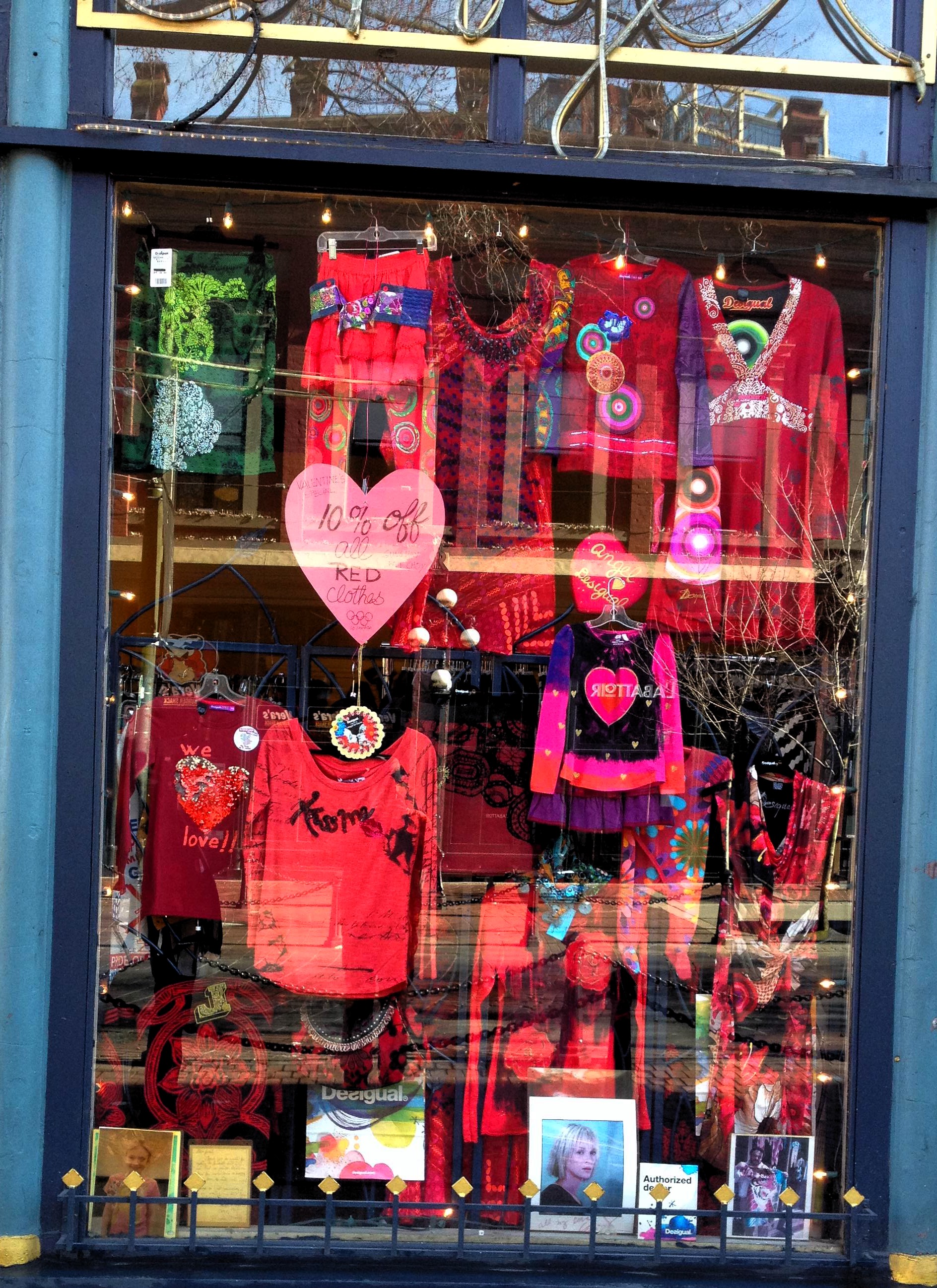 Angel Vancouver did an all-red window for Valentine’s Day and gradually the window is turning green for St. Patrick’s Day, which is next Monday. Until then, we’re offering 10 percent off everything green in our store.