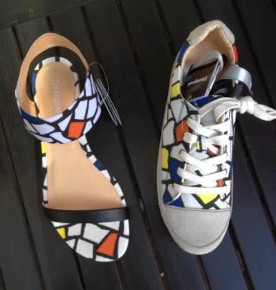 These two shoes capture the coloured ceramic tile work of Barcelona’s most famous architect, Antoni Gaudi. GEMMA sandals & JOSE lace-up runners/sneakers. photo by angelvancouver.com