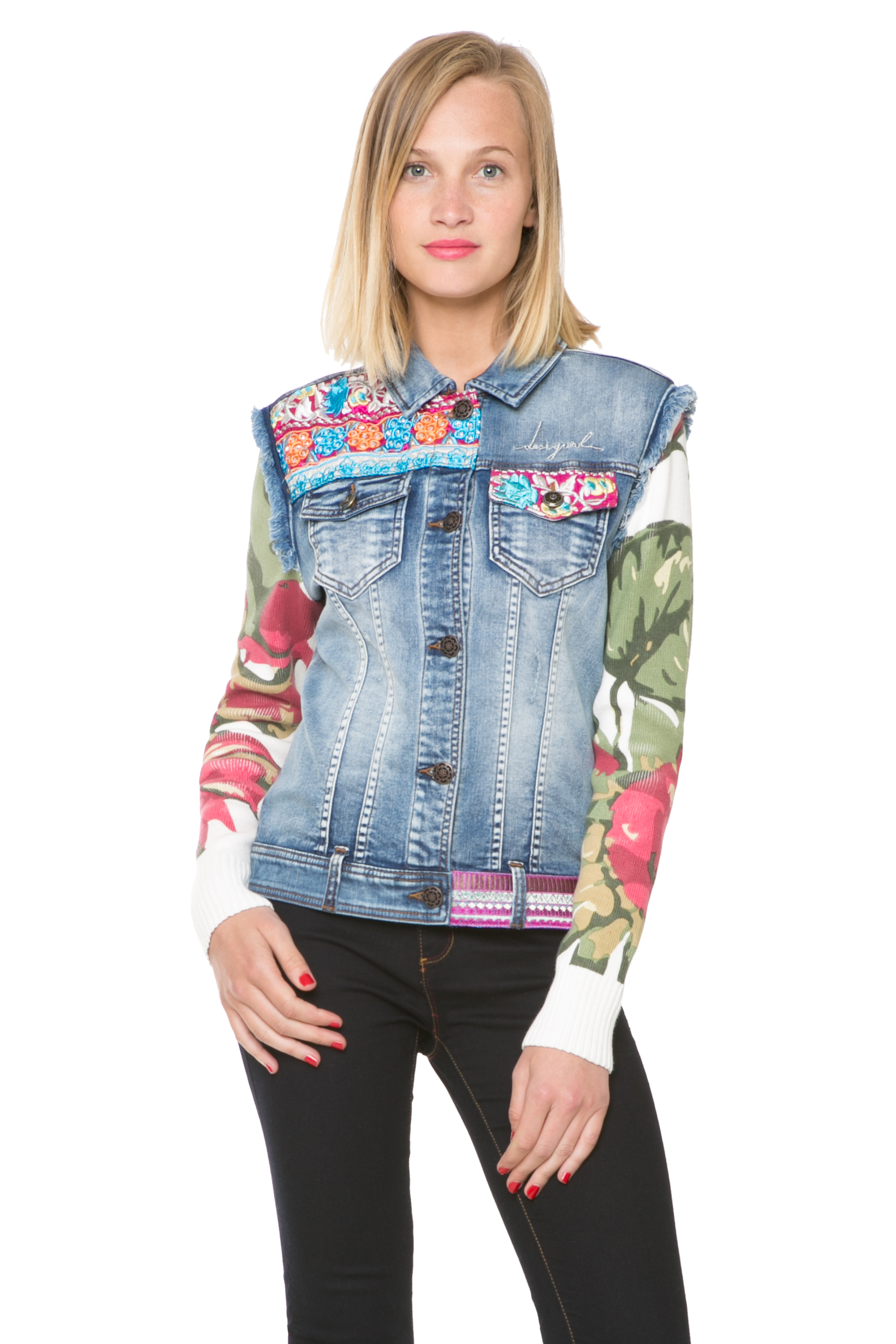 Desigual Ethnic jean jacket for Spring-Summer 2016. Angel still has the winter version in stock, which has dark blue sleeves.