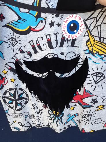 Close-up of ENRIC shirt — lift the eye patch and see the eyeball.
