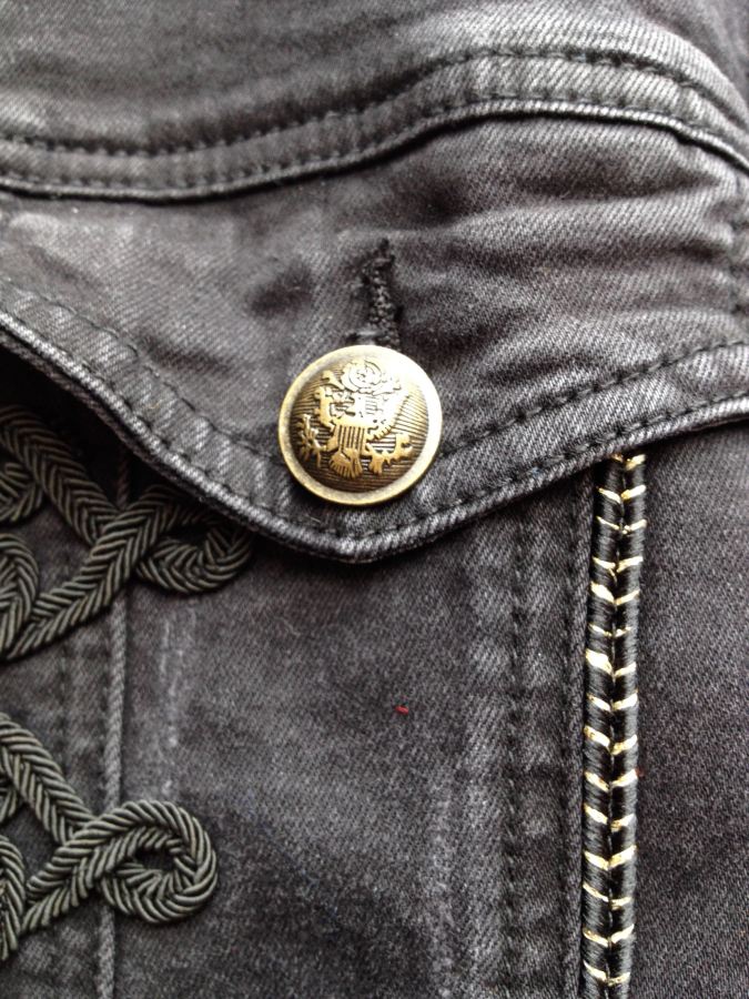 Desigual NAVY denim coat with brocade detailing, Sgt. Pepper buttons and cuffs. $255.95. Fall-Winter 2017 collection – called Extaordinary