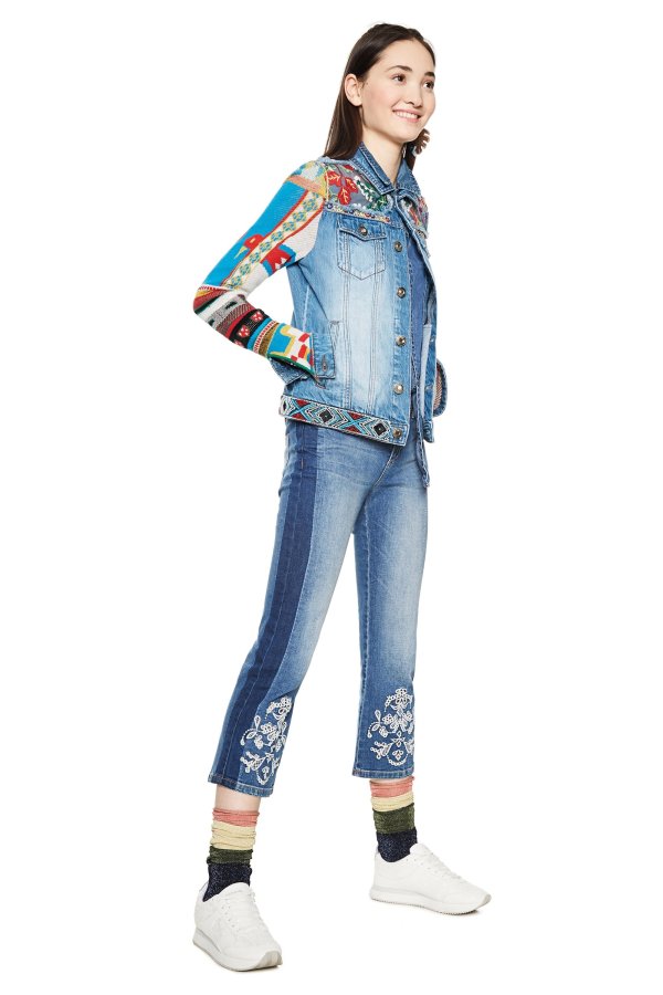 Desigual FIORELLA denim jacket, knit sleeves. $205.95. SS2018.