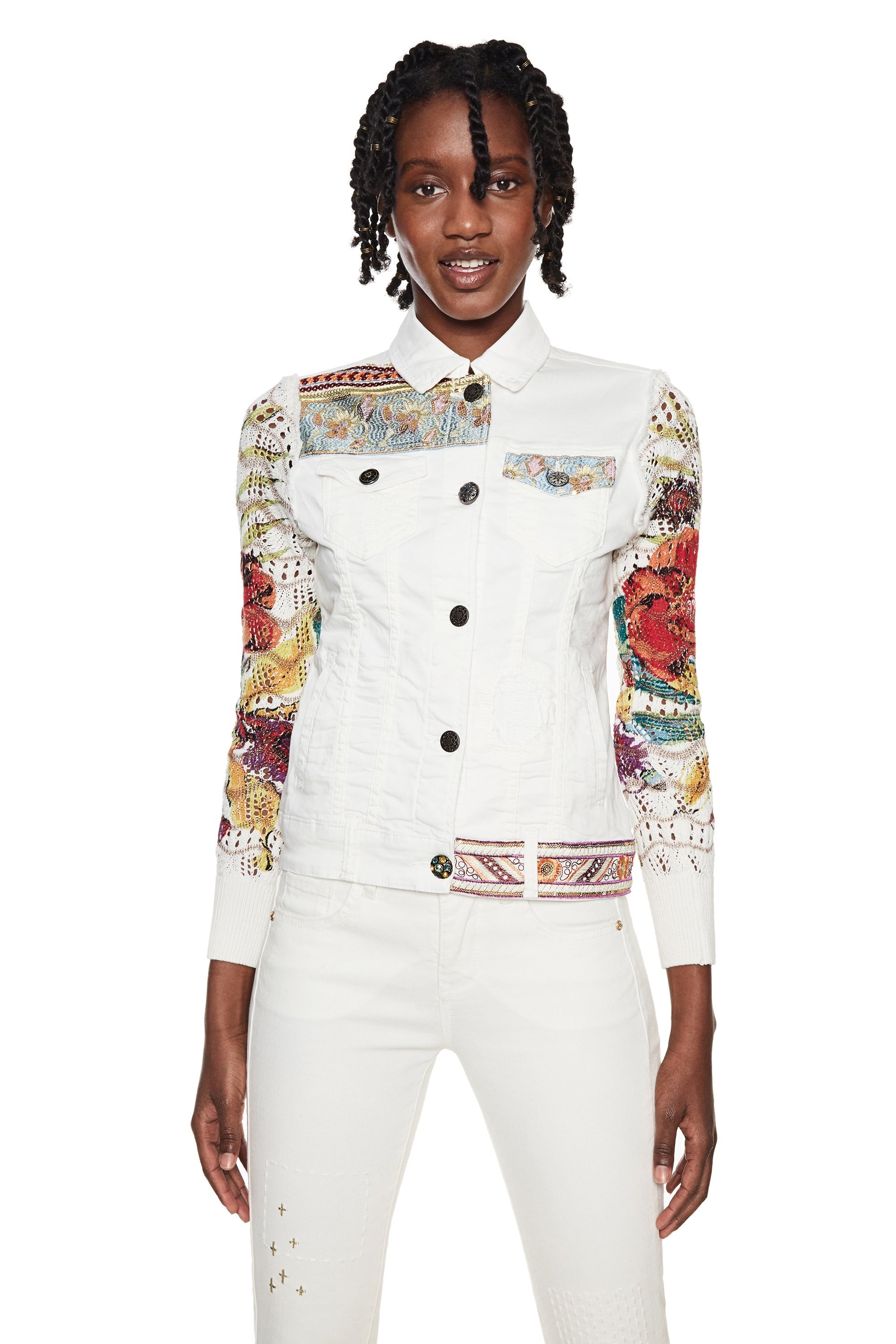 Desigual LA-LA FOR YOU exotic white denim jacket. $205.95. SS2018.