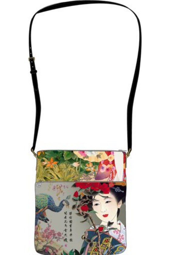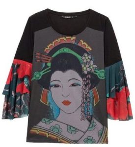 East Meets West: Desigual ALANYA cotton denim jacket with a Japanese landscape and Japanese inspiration becomes a reality in a landscape, geisha print with floral embroidery. $255.95. FW2018.