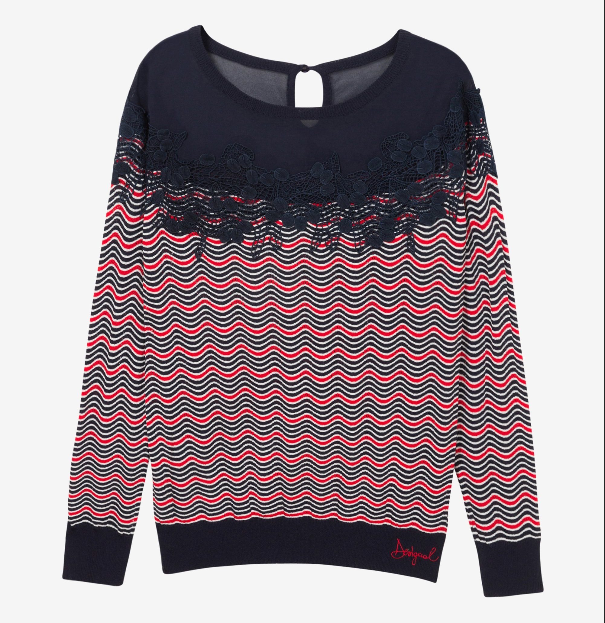 Desigual LAURA sweater with crochet details. $169.95.