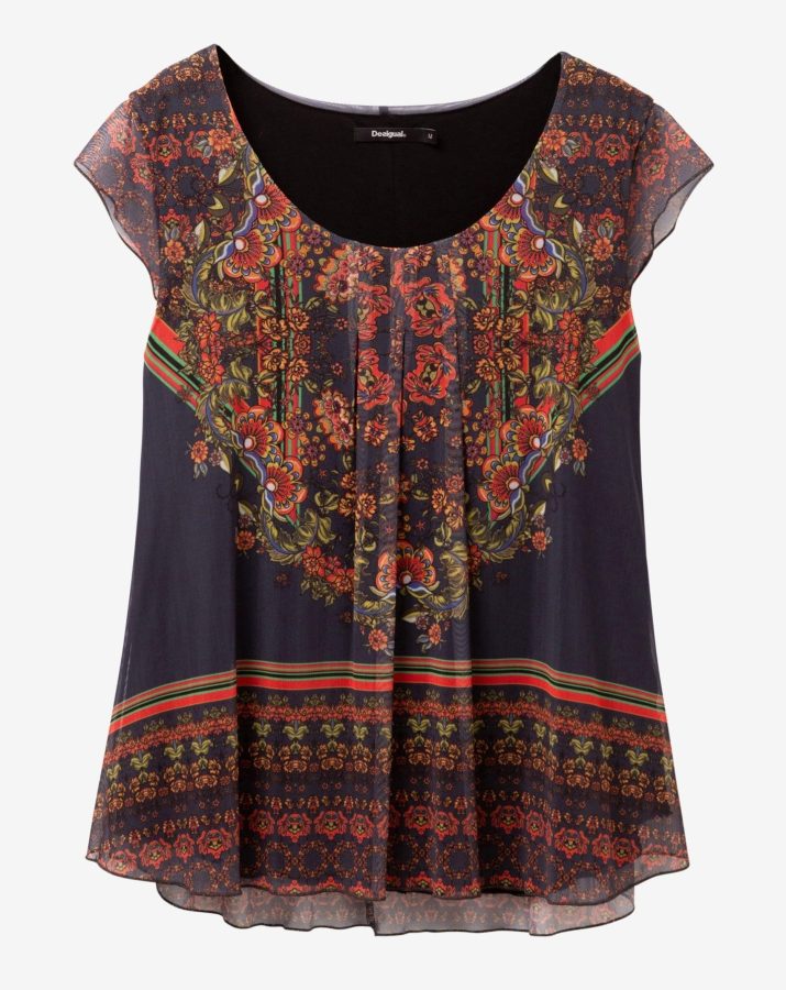 Desigual NANUK T-shirt. $125.95. Short-sleeved double-layer scoop-neck T-shirt with ethnic-inspired print. Its loose fit and floral print in browns and ochres