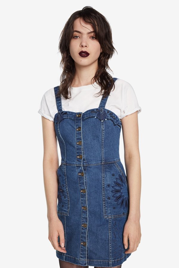 Desigual BANDANA pinafore denim mini dress. $189.95. FW2019.