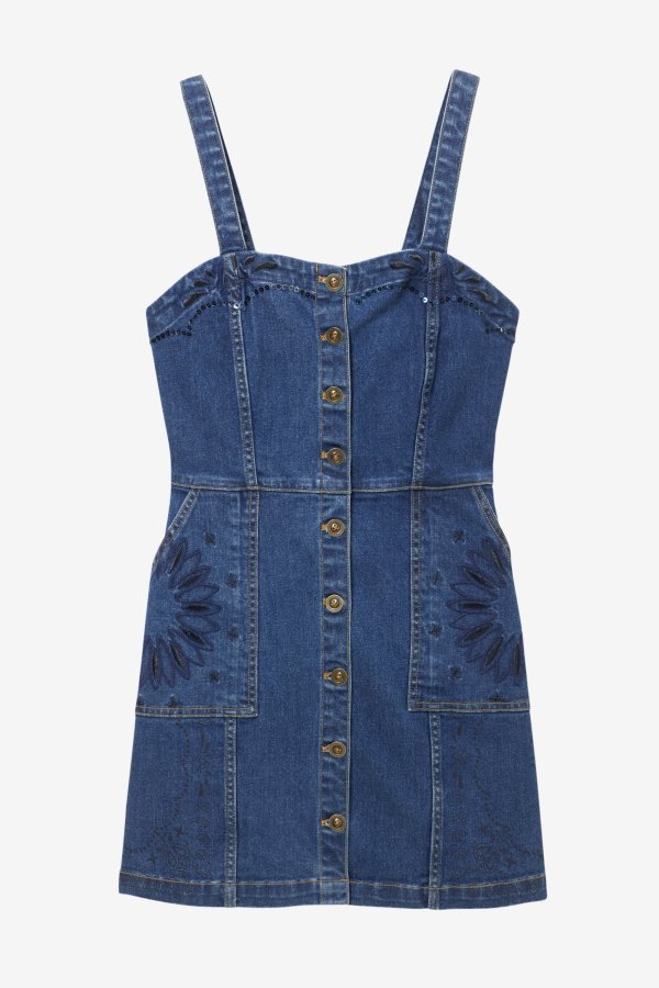 Desigual BANDANA pinafore denim mini dress. $189.95. FW2019.