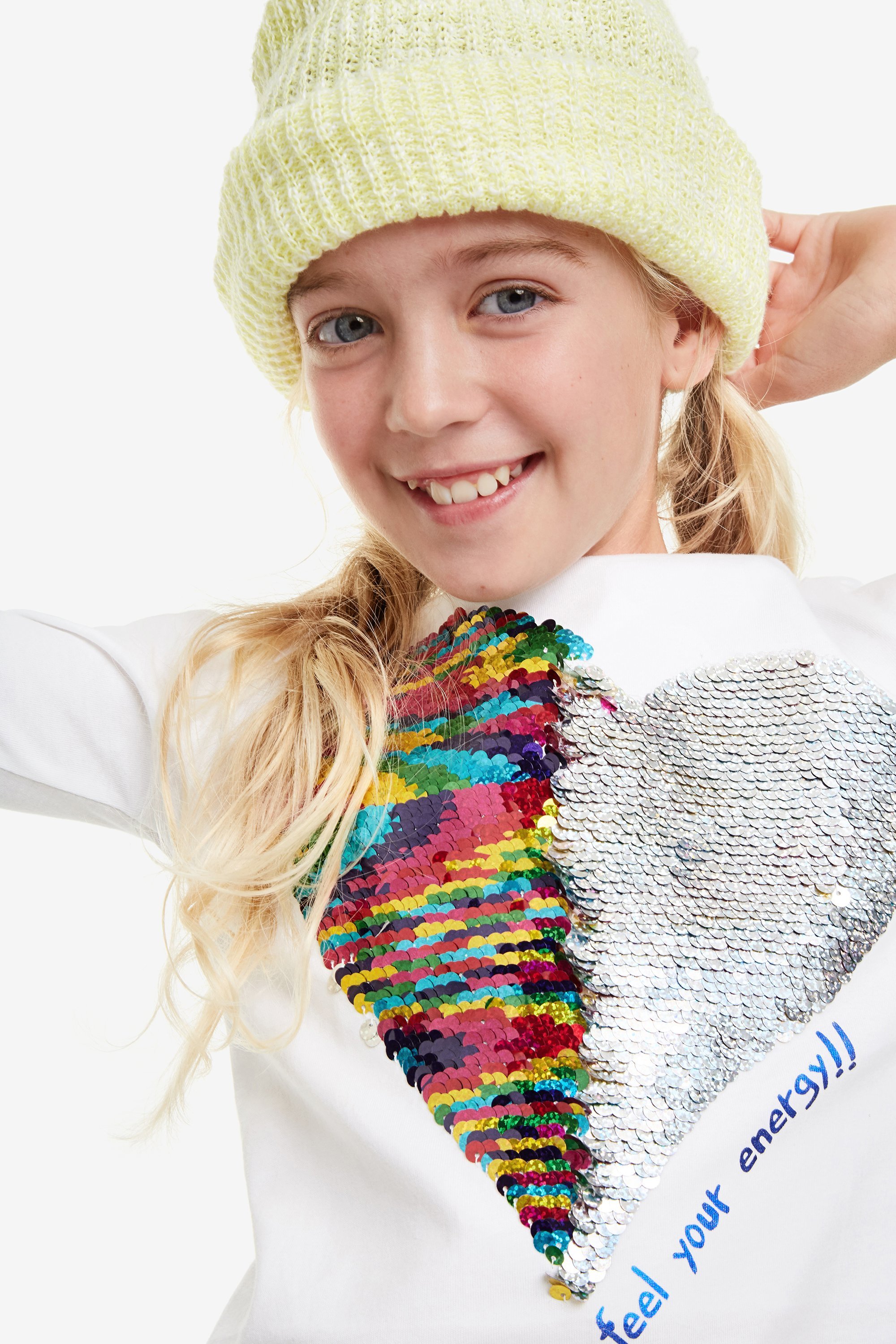 Desigual VIRGINIA reversible sequins heart T-shirt. $59.95. FW2019.