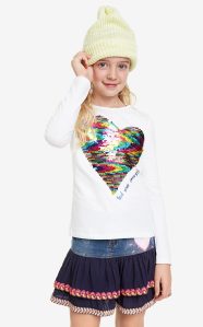 Desigual kids VIRGINIA reversible sequins heart T-shirt. $59.95. FW2019.