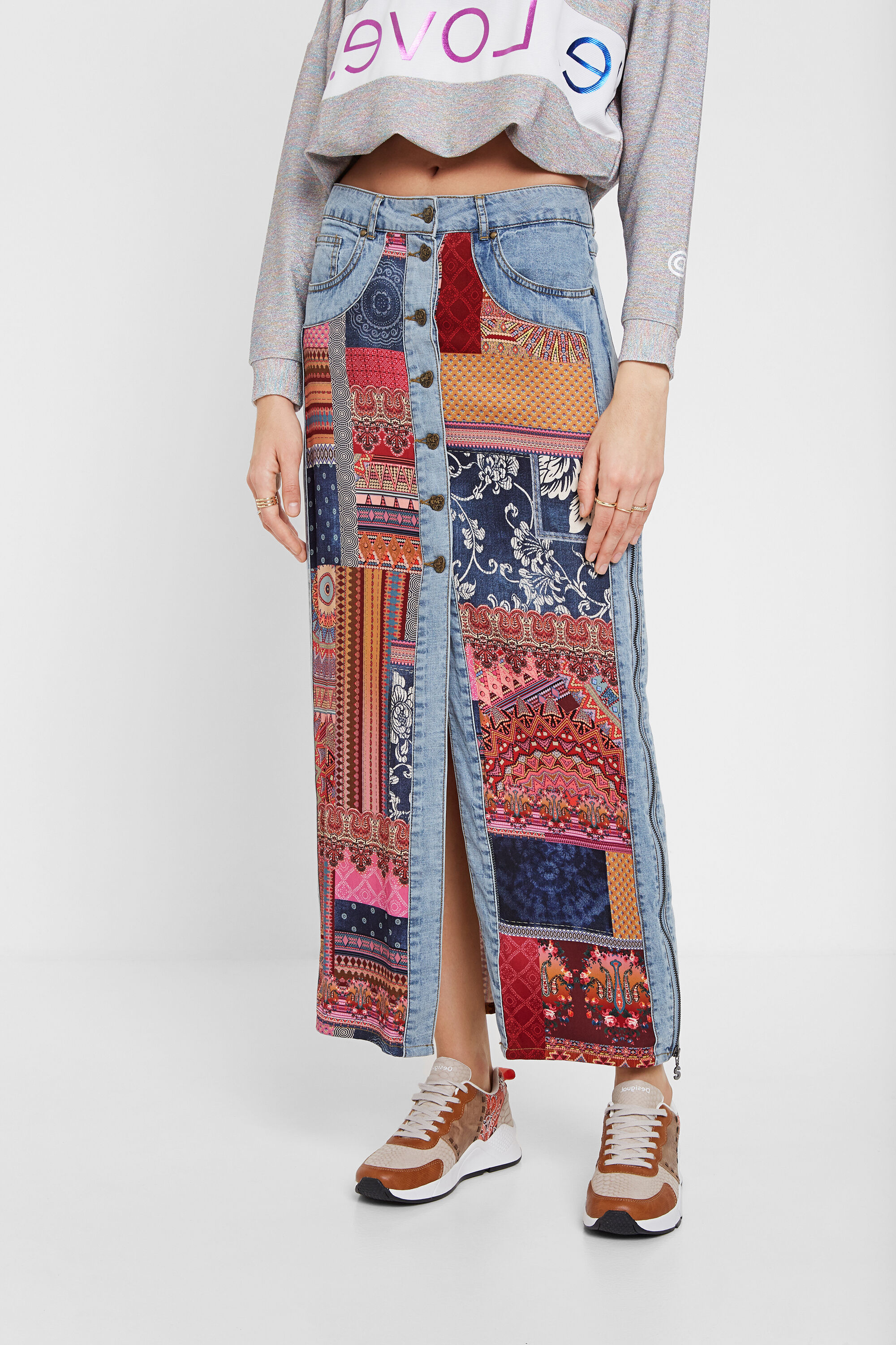Desigual GRECIA denim midi skirt. $205.95. SS2020.