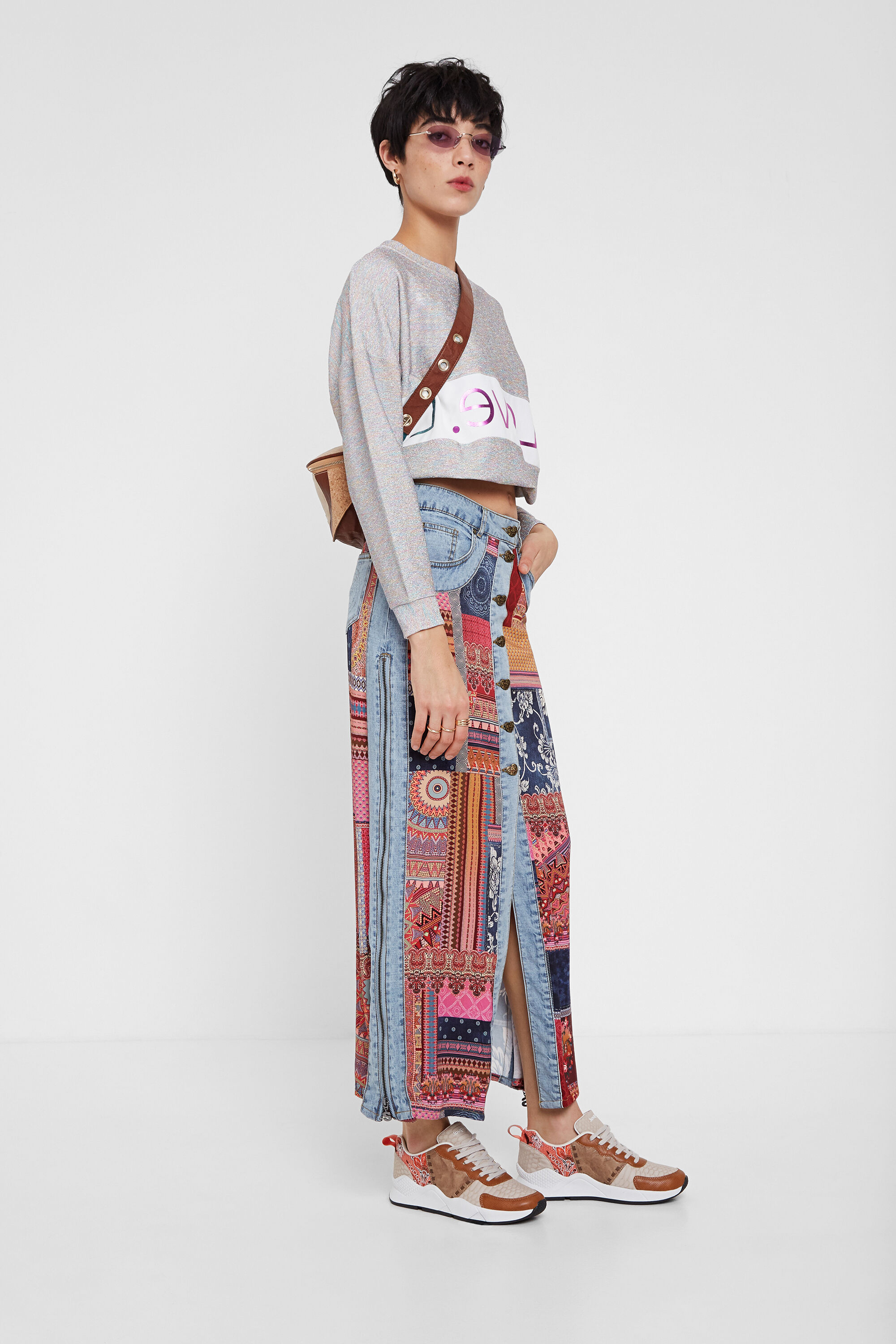 Desigual GRECIA denim midi skirt. $205.95. SS2020.