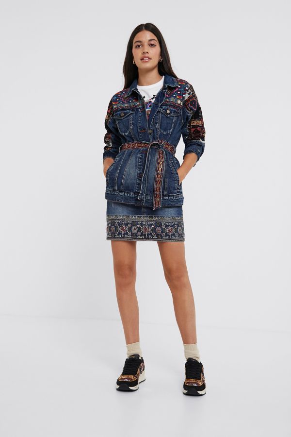 Desigual ATHLAS long embroidered denim jacket. $359.95. FW2020.