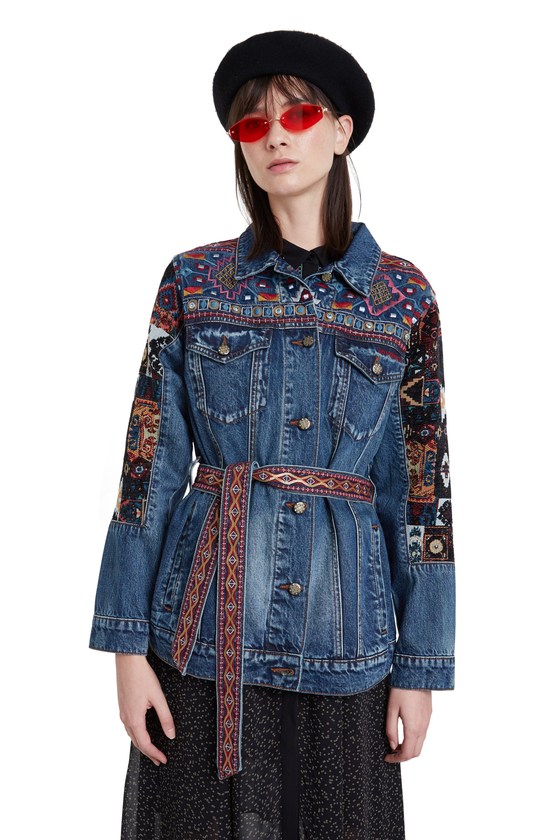 Desigual ATHLAS long embroidered denim jacket. $359.95. FW2020.