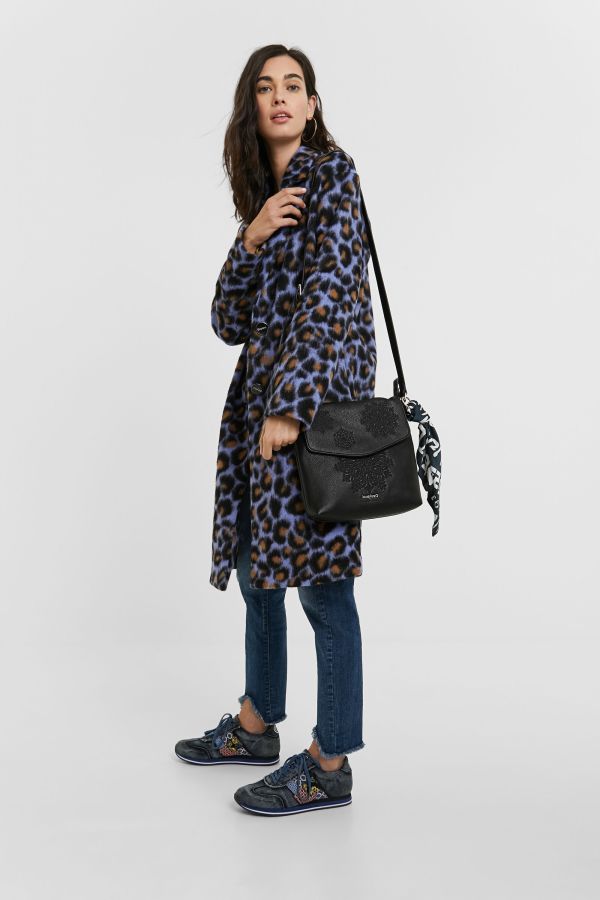 Desigual blue leopard skin print coat. FW2020 collection.