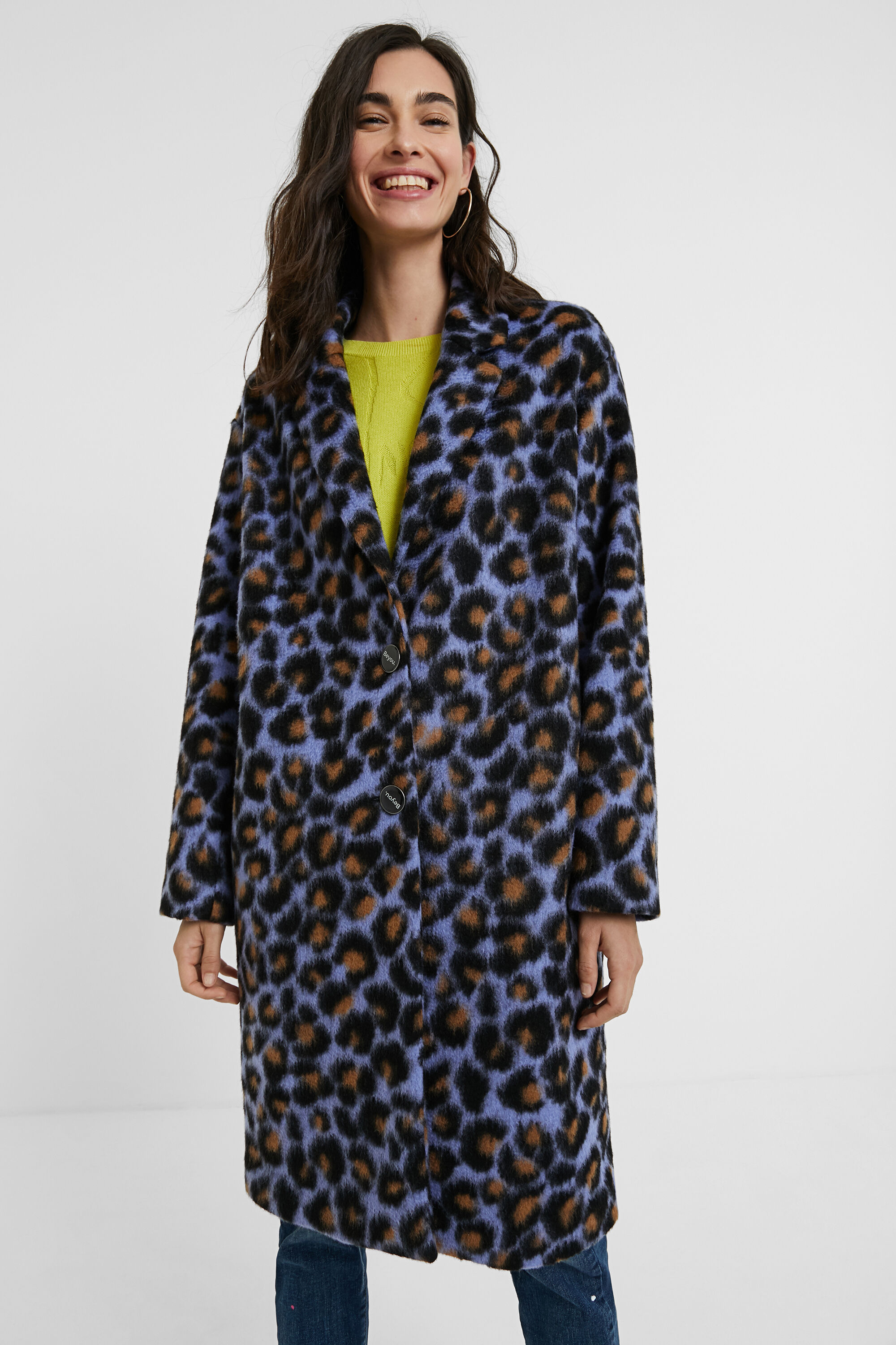 Desigual blue leopard skin print coat. FW2020 collection.