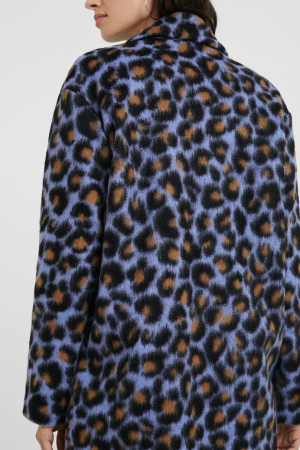 Desigual blue leopard skin print coat. FW2020 collection.