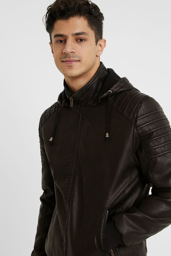 Desigual ASENSIO vegan leather jacket with hood. $309.95. FW2020.