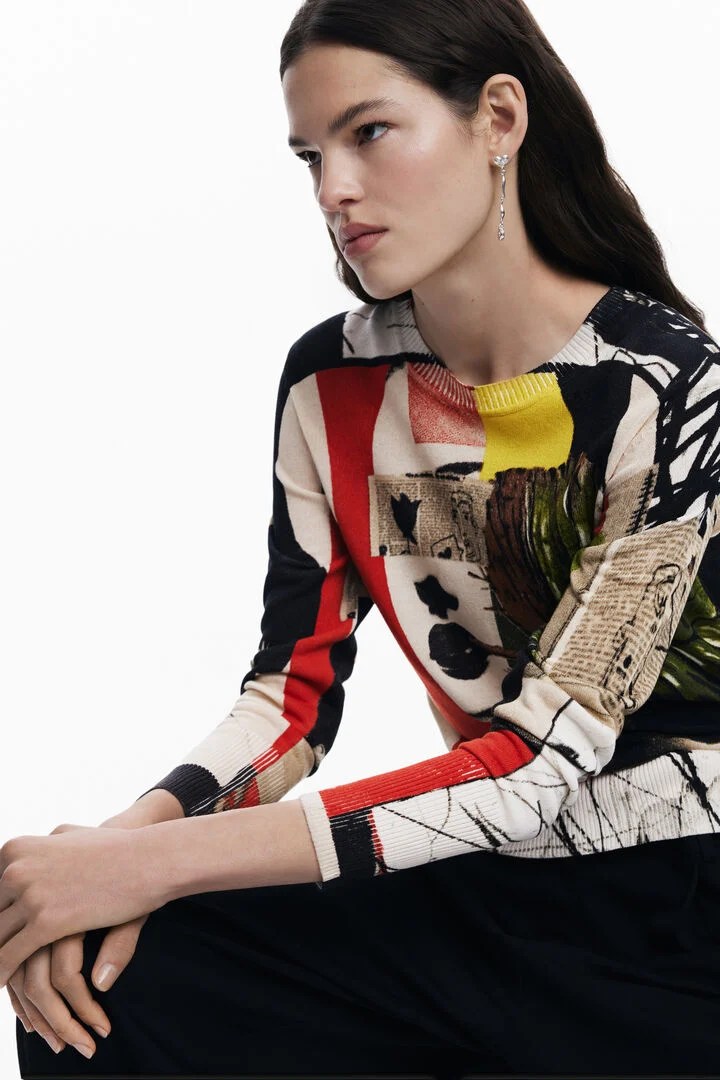 Desigual COLLAGE thin-knit linen-viscose sweater by Christian Lacroix. $169.95. SS2025.