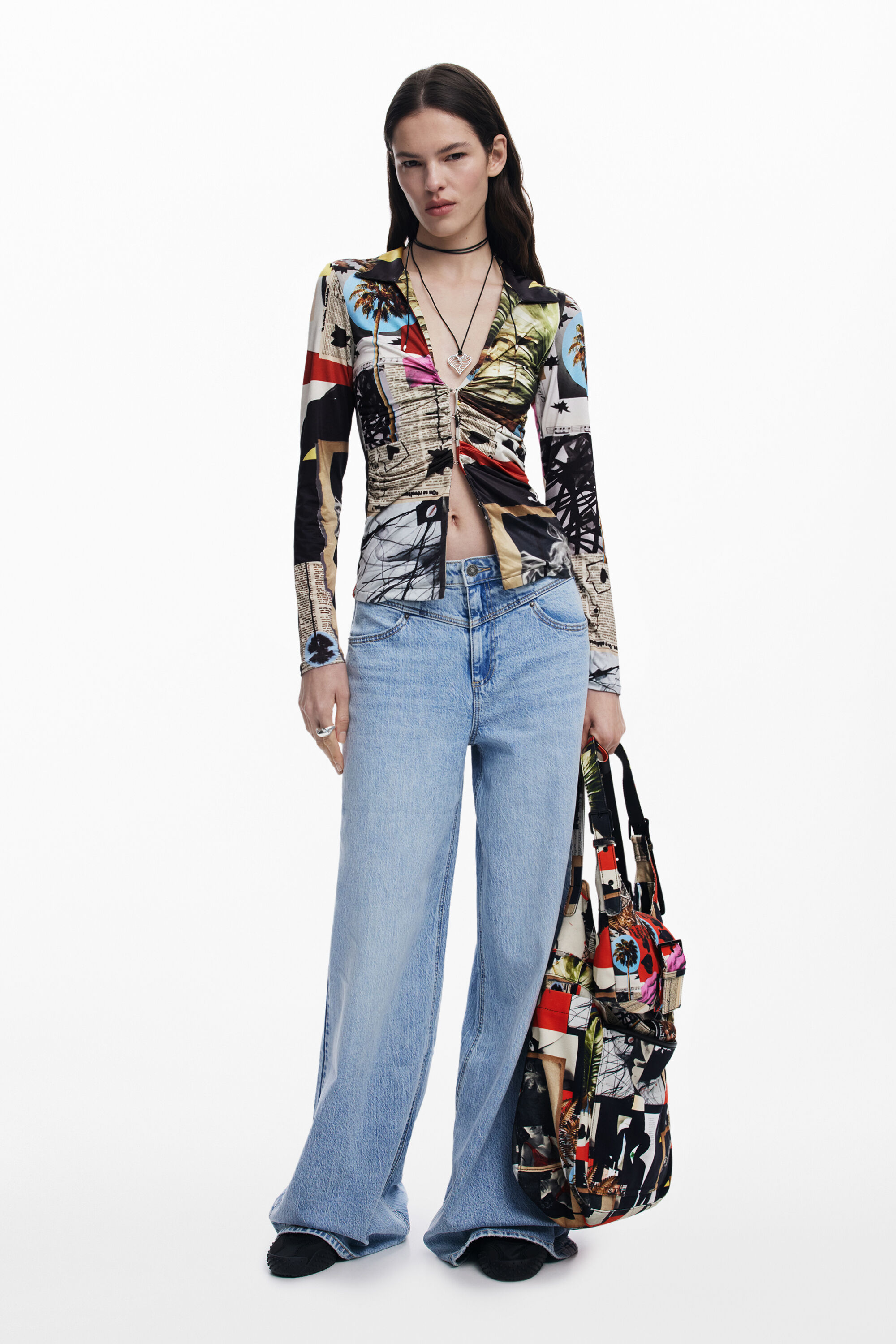 Desigual RECORTES cotton shirt with zip front by Christian Lacroix. $189.95. SS2025.
