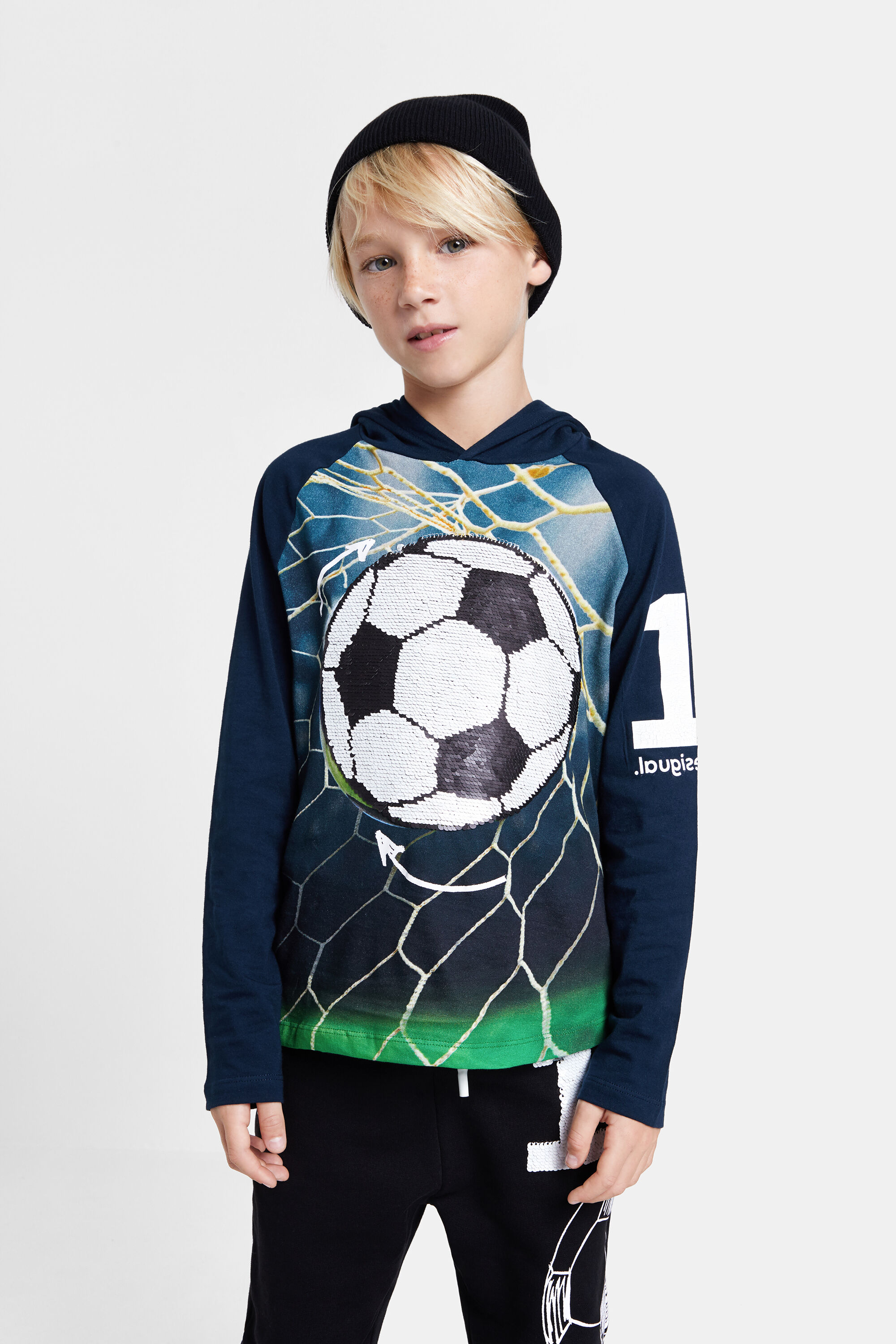 Desigual kids MANU soccer shirt with reversible sequins. $69.95. FW2020.