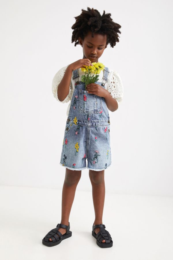 Desigual CLARI denim short overalls with embroidery. $115.95. SS2022. 22SGDD06